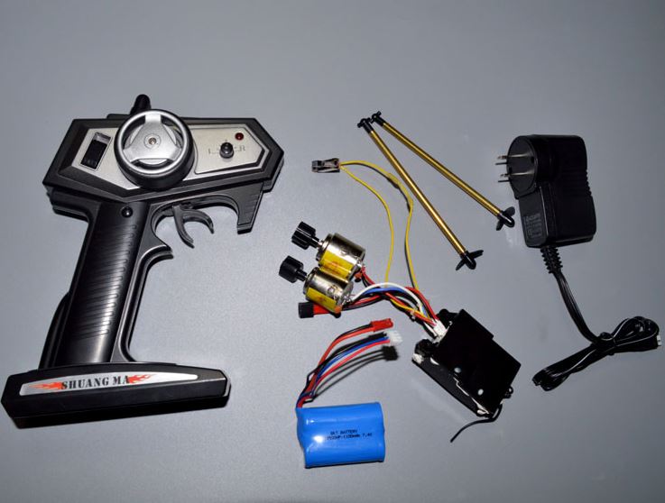 Tên sản phẩm: trọn bộ thiết bị điện thuyền điều khiển từ xa 2 chân vịt chế tàu dưới 50cm.