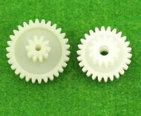 Bánh răng hai lớp M1-10T+30T (màu trắng nhạt) : số răng nhỏ là 10 (chiều cao 11,5 mm), số răng lớn là 30 (chiều cao 8 mm), lỗ bên trong là 3,05 mm (lỏng với 3 mm) trục)