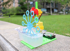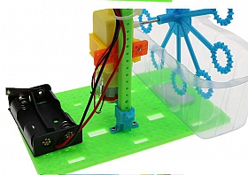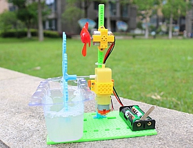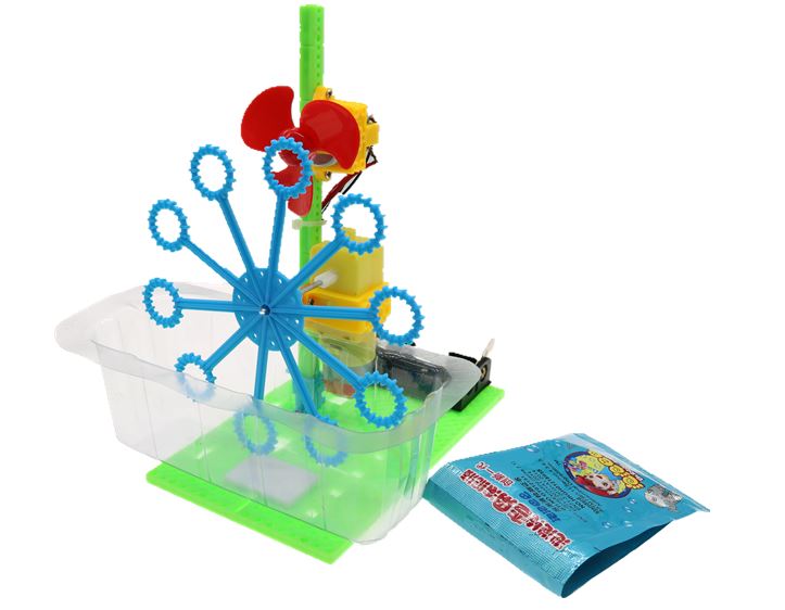 Mô tả sản phẩm khi hoàn thiện: Máy bong bóng tự chế dựa trên nguyên lý sức căng bề mặt. Khi nhấn công tắc dao, động cơ bắt đầu khởi động và đẩy chân vịt quay để tạo thành một cú đánh. Khi đầu bong bóng quay, chất lỏng bong bóng treo trên đầu bong bóng sẽ bị thổi ra